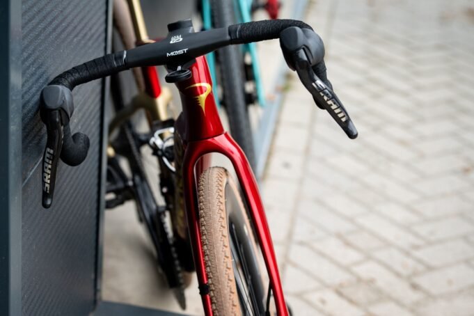 Rosa Klöser, por el contrario, ganó el premio al neumático más ancho utilizado durante el fin de semana, con una rueda delantera equipada con un Continental Dubnital. No podemos decir qué modelo son, pero solo vienen en opciones de 2,2″ o 2,4″, lo que supone al menos 57 mm de banda de rodadura para ayudarle a afrontar la grava belga. ¿Optimizado o excesivo?