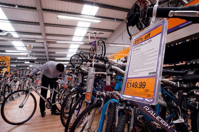 Conocido por su actividad automotriz, Halfords es el minorista más grande de la industria ciclista británica. Venta una gama de bicicletas, incluidas Boardman y Carrera de marcas internas.