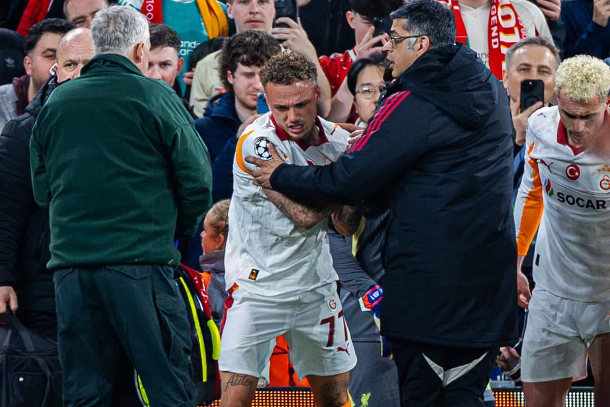 Lang fue derribado en camilla a mitad de la segunda mitad de la derrota del Galatasaray por 4-0 ante el Liverpool después de pillarse el pulgar entre carteles publicitarios.