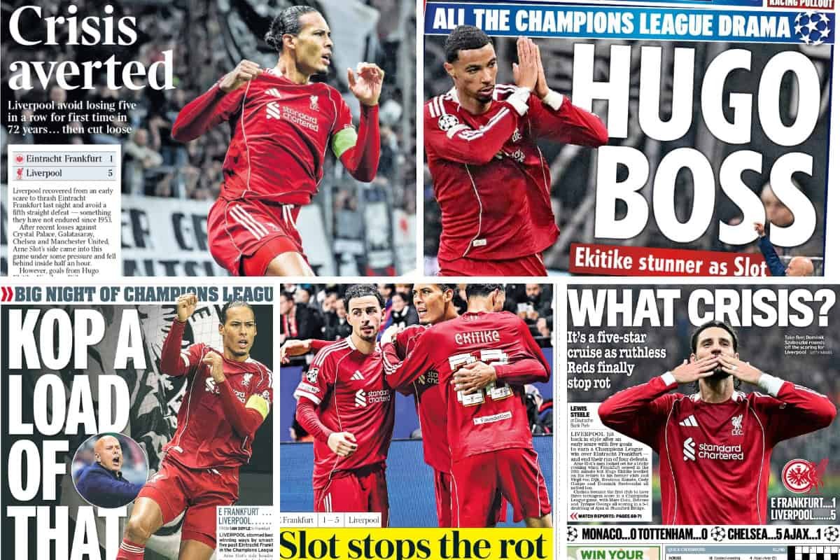 Hugo Ekitike y Florian Wirtz recibieron elogios de los medios después de que el Liverpool, con cinco cambios respecto al fin de semana, venciera al Frankfurt por 5-1.