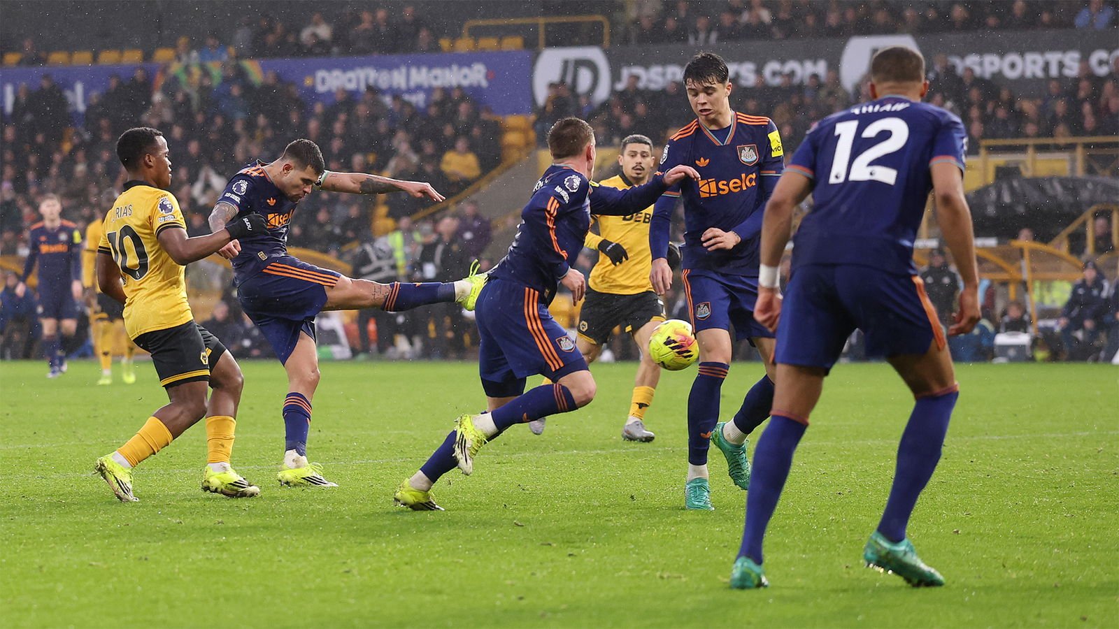 Número total de disparos fueron Newcastle 12 Lobos 6