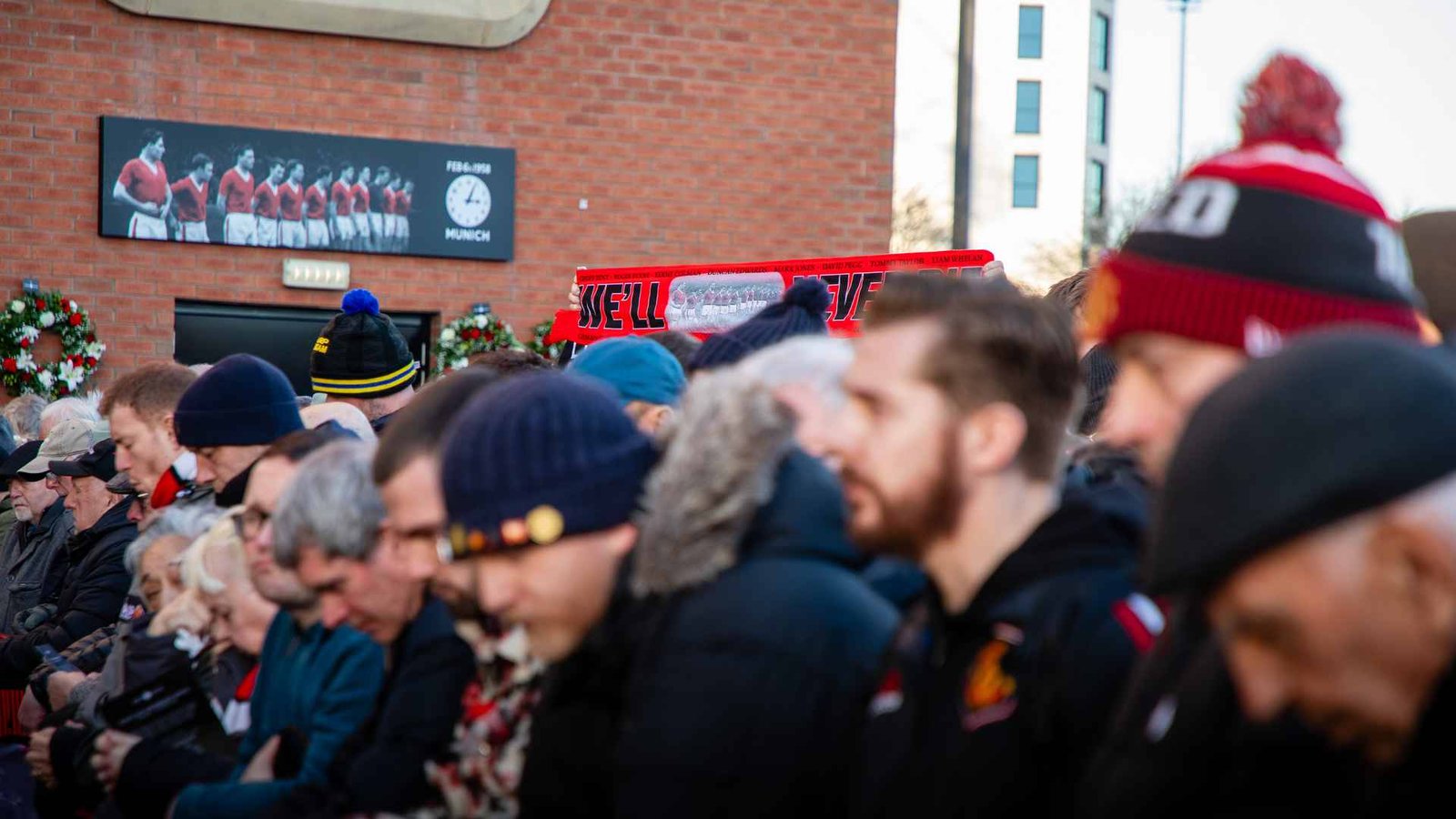 Los respectivos entrenadores del United, Michael Carrick y Marc Skinner, depositaron una ofrenda floral, seguidos por los capitanes Bruno Fernandes y Maya Le Tissier, especialistas del equipo juvenil y Duncan Drasdo del Manchester United Supporters Trust.