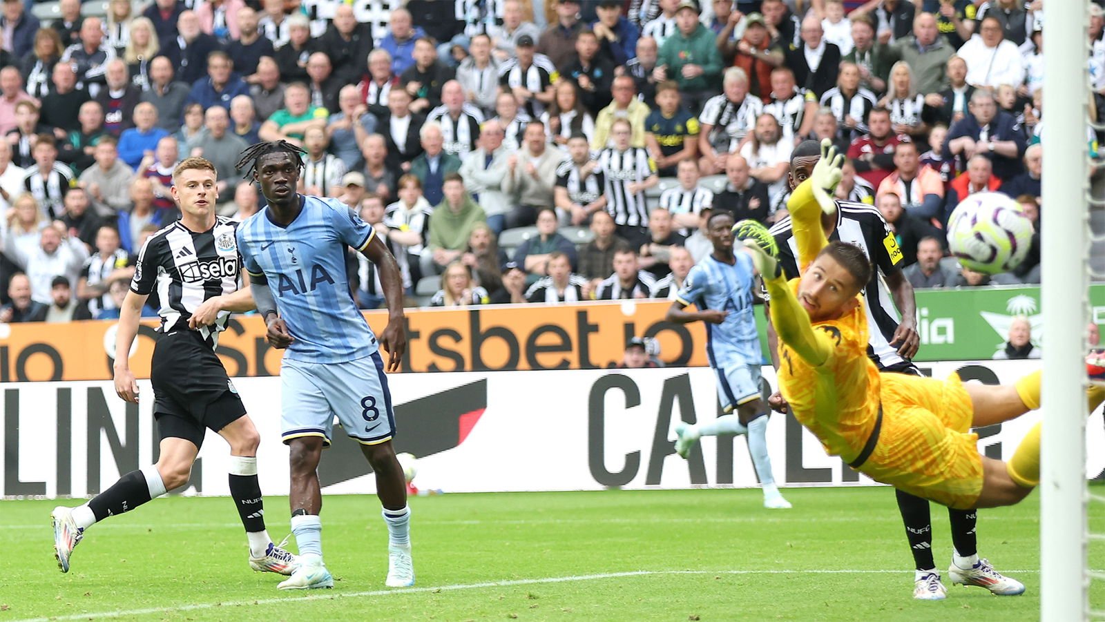 Con solo cinco minutos en el reloj, Gary Speed continuó donde lo dejó en el último juego y arrasó para darle al United la ventaja. Las cosas mejoraron aún más poco después, cuando Nikos Dabizas cabeceó un córner de Nobby Solano para duplicar la ventaja. El ex favorito David Ginola jugaba para el Tottenham y cada toque suyo fue recibido con abucheos y abucheos por parte de los fanáticos de Toon. Su respuesta fue disparar un disparo desde fuera del área que desvió a un defensor y entró en la red.