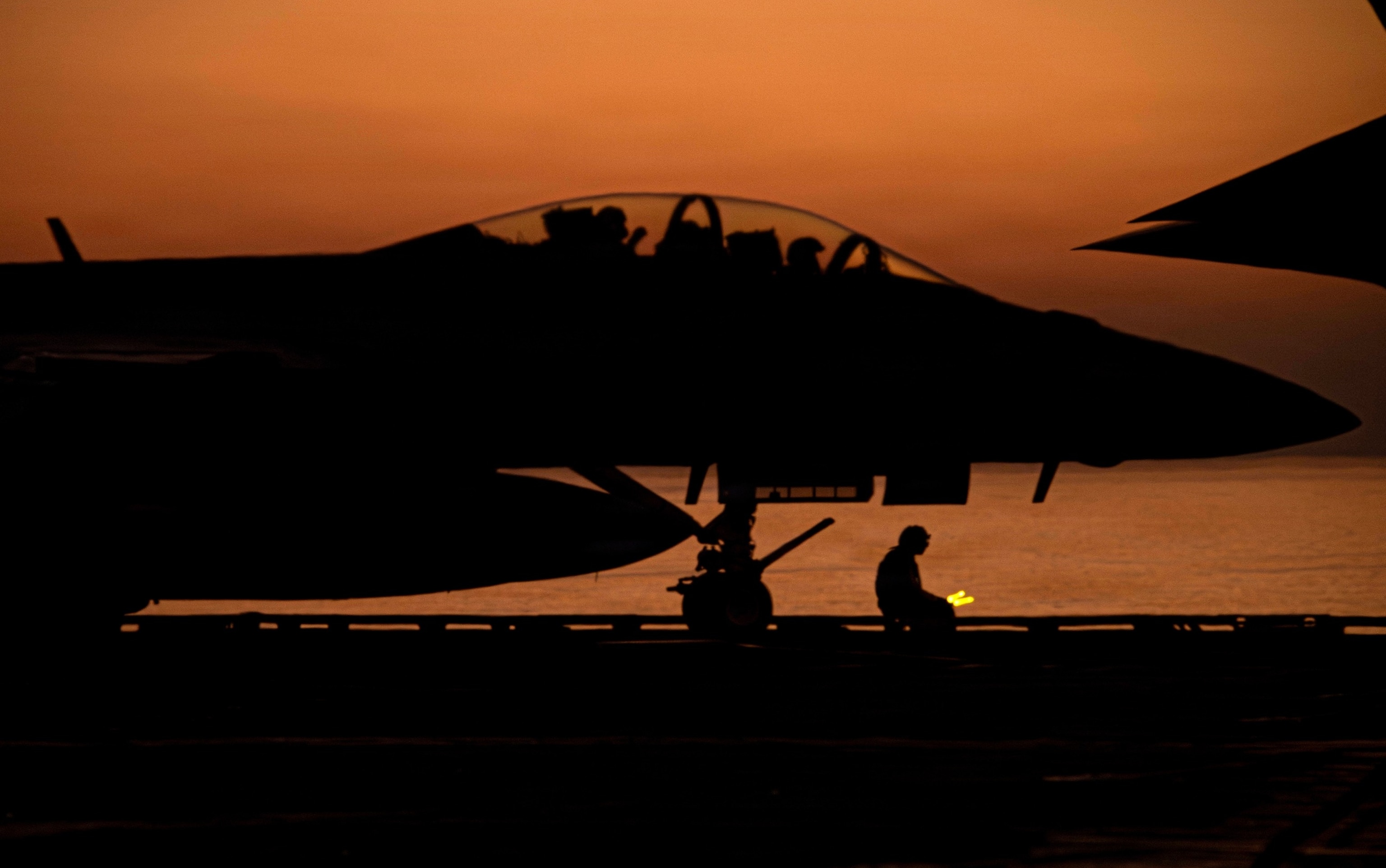 Un F/A-18E Super Hornet, adscrito al Strike Fighter Squadron 41, se prepara para despegar desde la cubierta de vuelo del portaaviones clase Nimitz USS Abraham Lincoln en el Mar Arábigo, el 15 de febrero de 2026.