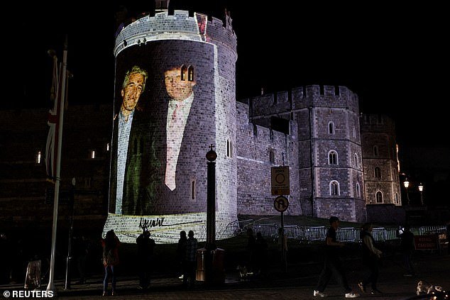 Las imágenes del Príncipe Andrew y el Financial Financier también se transmitieron a lo largo del Muro del Castillo de Windsor