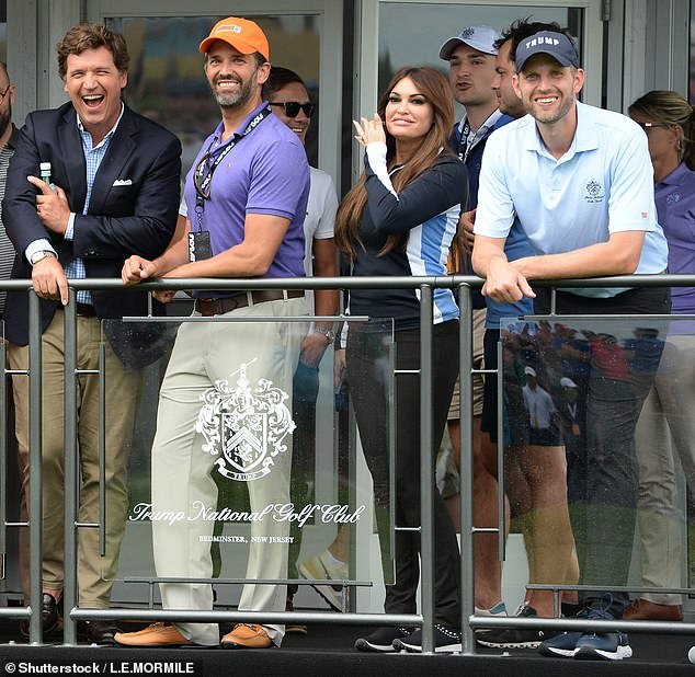 Tucker Carlson, Donald Trump Jr, Kimberly Guilfoyle y Eric Trump en el Trump National Golf Club en Bedminster, Nueva Jersey, en julio de 2022