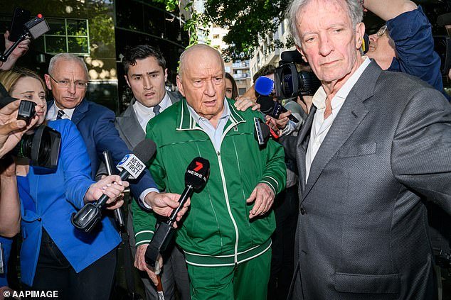 La ex estrella de radio Alan Jones fue acusada de cinco nuevos jefes de asalto indecente. Es fotografiado saliendo de la estación de policía de Day Street en Sydney en noviembre del año pasado
