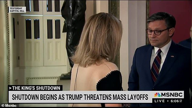 Dean también reprendió a Johnson por el tren de Trump para el jefe de la minoría del Senado, Chuck Schumer, y el jefe minoritario de la sala Hakeem Jeffries. En los últimos días, Trump ha publicado varios videos sobre la verdad que se burlan de los líderes democráticos con bigotes falsos IA y Sombreos.