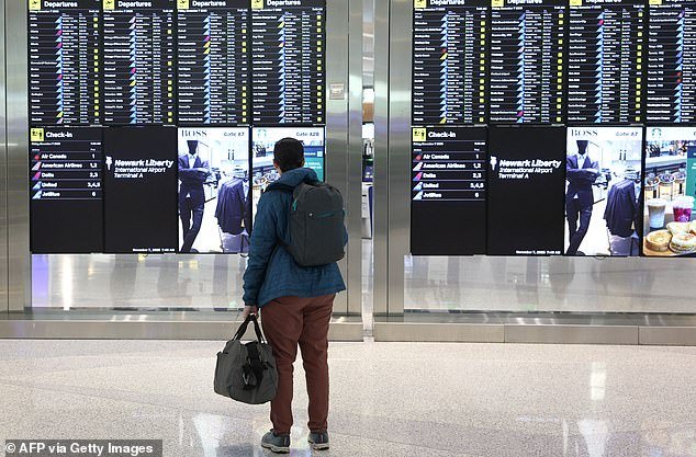 Todavía se siguen produciendo importantes retrasos en los aeropuertos de EE. UU. a medida que avanza el cierre del gobierno, y miles de viajeros se enfrentan a importantes retrasos. Se emitió una parada en tierra para el Aeropuerto Internacional Newark Liberty (en la foto) en Nueva Jersey, lo que afectó a cientos de vuelos el domingo.