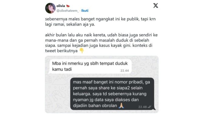 Jacarta – El caso del presunto uso indebido de datos personales por parte de empleados sin escrúpulos de PT Reska Multi Usaha o KAI Services está atrayendo actualmente la atención del público. Un pasajero admitió haber sido contactado personalmente por una persona desconocida que se sabe que trabaja en KAI, a pesar de que nunca había compartido su número de teléfono con nadie más que su familia.