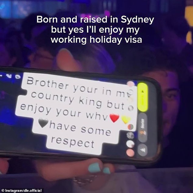“Hermano, tú eres el rey de mi país, pero aprovecha tu (Working Holiday Visa). Ten un poco de respeto”, decía el mensaje de la mujer.