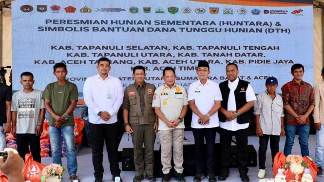 Tapanuli Sur, VIVA – El presidente del Grupo de Trabajo para Acelerar la Rehabilitación y Reconstrucción Post-Desastre en Sumatra, Muhammad Tito Karnavian, inauguró 200 unidades de vivienda temporal (huntara) en Simarpinggan, Angkola del Sur, Regencia de Tapanuli del Sur, Sumatra del Norte (Sumatra del Norte), el jueves (05/02/2026). Este refugio fue construido por la Agencia Nacional de Gestión de Desastres (BNPB) en colaboración con Danantara.
