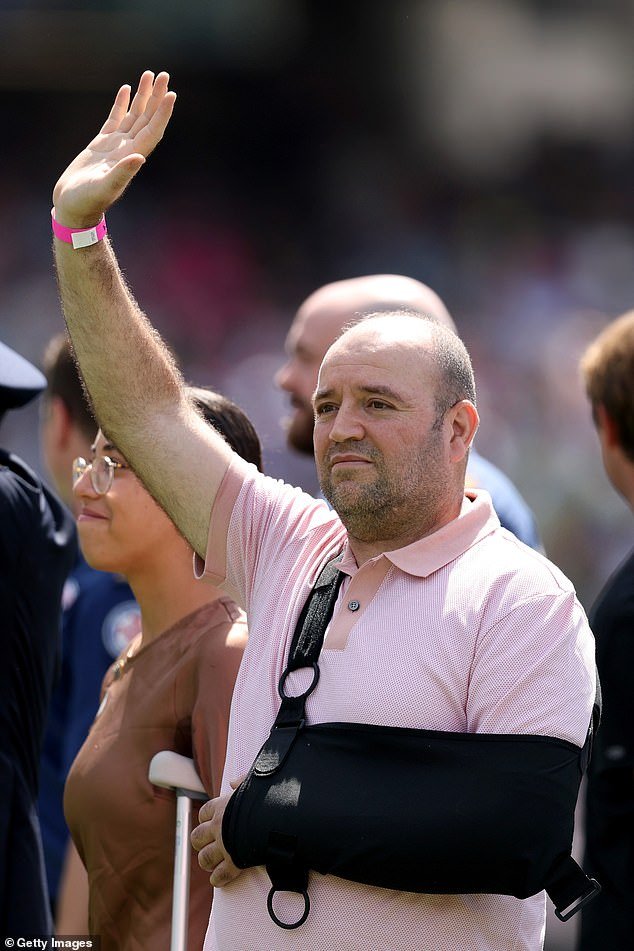 Al Ahmed dijo que sufrió una “hinchazón repentina” en la mano mientras estaba en Nueva York, lo que, según dijo, fue una parte desalentadora de su recuperación (en la foto, herido justo después del ataque en Bondi Beach).