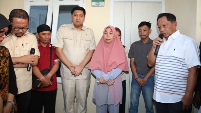 Viva – El Ministro de Asuntos del Interior (Ministro del Interior) Muhammad Tito Karnavian Kahuripan testigo para suministrar casas a la familia Afan Carniawan en el Complejo 10 Pesona, Distrito de Silingi, Bogo Regency, West Java, lunes (1/9/2025). La presencia del Ministro del Interior como representante del gobierno para cumplir con los ideales de la persona muerta que quería dar una casa a su madre.