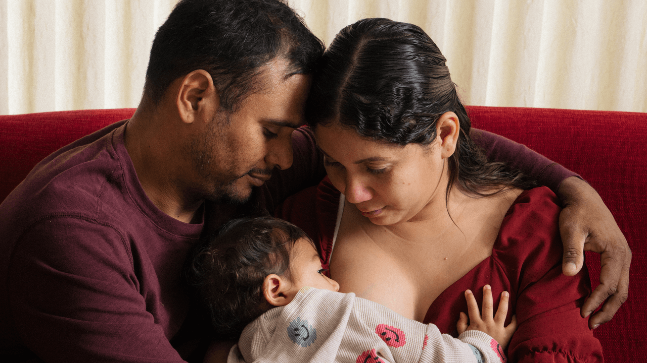 Cuando hablé con la familia dos noches después por Zoom, parecían encantados, sentados en un cómodo sofá rojo, con Amalia acurrucada en los brazos de su madre. Marcano llevaba el pelo recogido en trenzas y sonreía a menudo. Después de aproximadamente una hora, Amalia se quedó dormida. “Los globos que le regalaron para darle la bienvenida, porque cuelgan en el aire, a ella le encantan”, dijo Marcano mientras acunaba a la niña dormida.