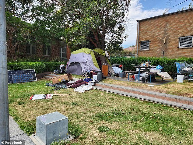 El video mostraba a un hombre vomitando a plena luz del día en el campamento para personas sin hogar de Cessnock Park mientras los peatones se ocupaban de sus asuntos.