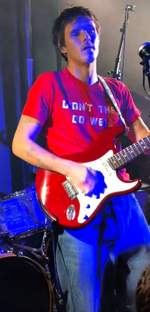 Cruz Beckham, de 20 años, tocó una guitarra eléctrica roja a juego con su camiseta frente a 100 apostadores en un pub del este de Londres.