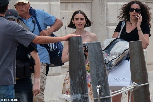 Sin embargo, la estrella del programa, Lily Collins, fue vista el sábado y casi fue vista en Venecia.