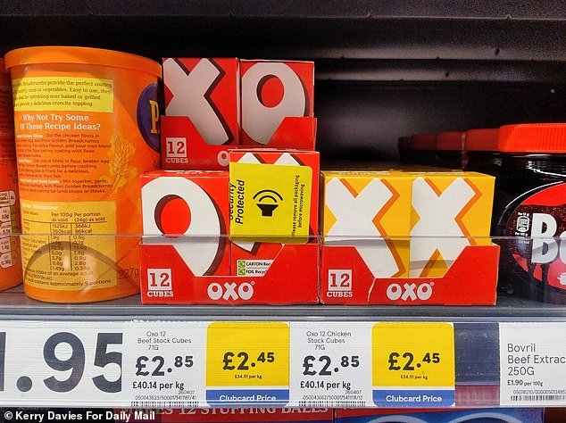 Pero en un intento desesperado por frustrar a los ladrones, Tesco se ha visto obligado a colocar etiquetas de seguridad en los paquetes de pastillas de caldo Oxo.