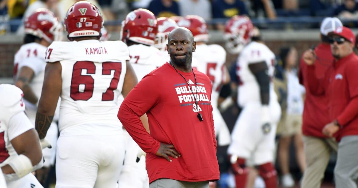 “Hizo un trabajo maravilloso para preparar a nuestro equipo y prepararse para el tazón”, dijo Terry Tumey, ex UCLA de la nariz, que designó al capitán del entrenador interino en diciembre de 2023, cuando Tumey era director deportivo del estado de Fresno. “Este es un paso mucho más grande, por supuesto, pero no es una propuesta extranjera para que él esté en una situación interina y se haga cargo y mantenga las cosas desde la distancia porque la administración define su próxima dirección”.