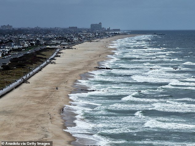 Una vista de la costa con mareas altas cuando Nueva Jersey declaró el estado de emergencia para los 21 condados debido a una poderosa tormenta del noreste que se espera que traiga fuertes lluvias, fuertes vientos e inundaciones costeras a partir del sábado por la noche en Nueva Jersey.