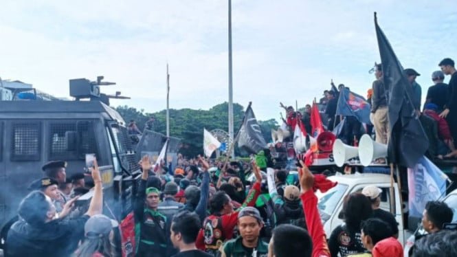 Mientras tanto, la manifestación todavía estaba en manos de una acción conjunta de dos ruedas (Garda) con la Unión de Trabajadores de Transporte de Indonesia (SPAI).