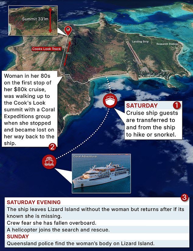 “Después de la operación, la policía de Queensland informó a Coral Expeditions que la mujer había sido encontrada muerta en Lizard Island.
