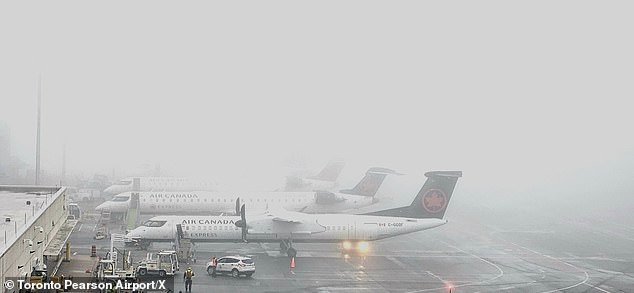Toronto Pearson compartió imágenes del aeropuerto el jueves por la mañana, informando a los viajeros que el personal se enfrentaba a un “comienzo del día con niebla”.