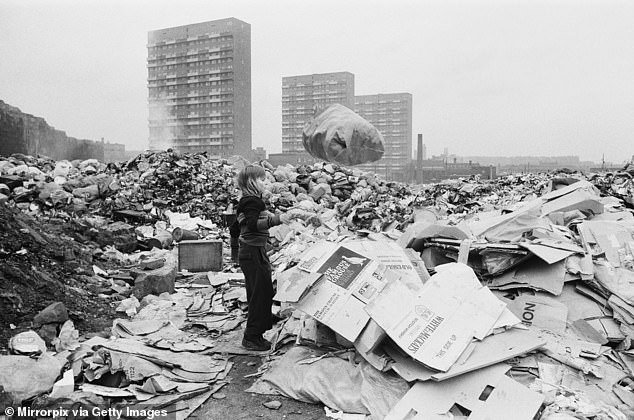 Una imagen impactante de una acumulación de basura en Glasgow después de una huelga de conductores de carros de basura en 1975.