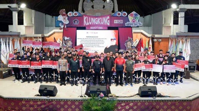 VIVA – El Comité Nacional de Deportes de Indonesia (KONI), Klungkung Regency, otorga altos premios a los atletas y entrenadores que enorgullecieron a la región durante la XVI Semana Deportiva Provincial de Bali (Porprov) 2025.