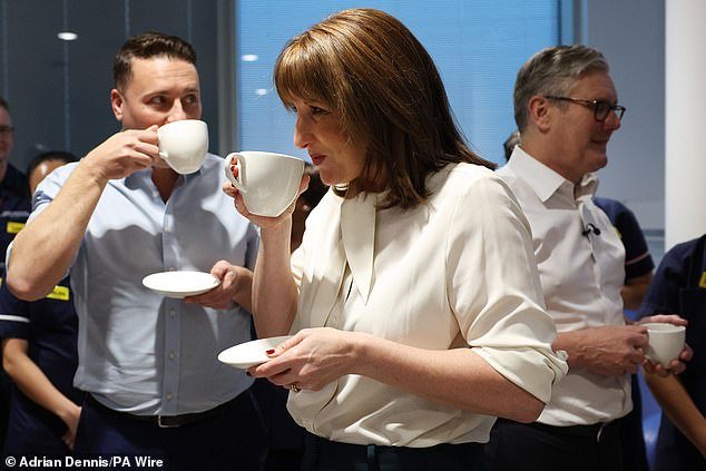 La Ministra de Hacienda Rachel Reeves (centro), el Secretario de Salud Wes Streeting (izquierda) y el Primer Ministro Sir Keir Starmer se reúnen con el personal del University College Hospital de Londres después de presentar su presupuesto.