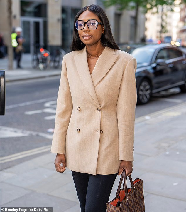 La ex estrella del Canal 5, Claudia-Liza Vanderpuije, fotografiada llegando al London Tribunal Centre el lunes para el primer día de una audiencia laboral de cinco semanas.