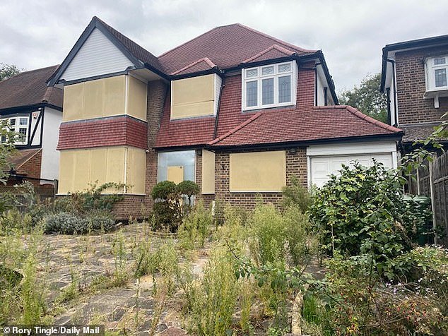 La maleza crece en el camino de adoquines, mientras que las fotografías del interior muestran una serie de habitaciones espaciosas pero cansadas.
