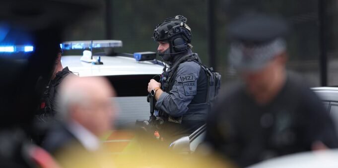 Un sospechoso fue asesinado a tiros por la policía armada en la escena con un apuñalamiento reportado durante una sinagoga en Crumpsall, Manchester, dijo la policía de Grand Manchester.