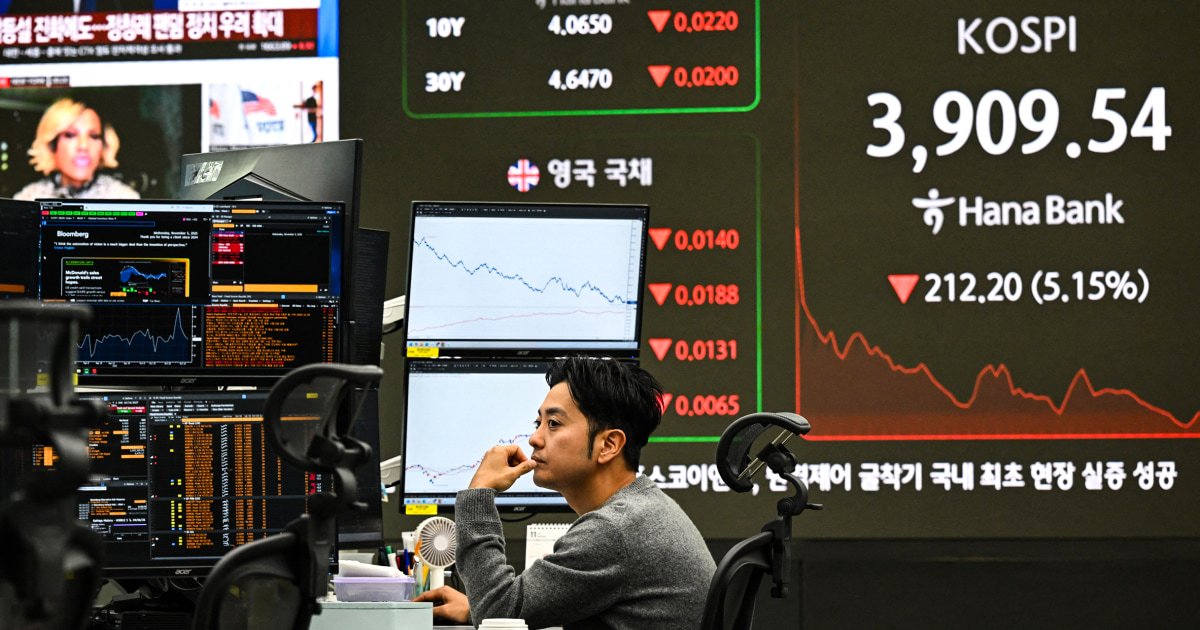 El índice bursátil Kospi de Corea del Sur se desplomó más del 6%. El promedio Nikkei 225 de Japón cayó alrededor de un 4,5% y el índice Hang Seng de Hong Kong cayó más de un 1%. Las acciones en Taiwán también cayeron alrededor de un 2,5%.