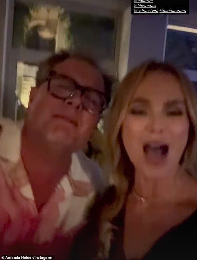 Amanda Holden estuvo acompañada por su compañero de trabajo y amigo Alan Car, que estaba viendo el juego con su equipo de filmación durante el rodaje de la obra griega de Amanda y Alan.