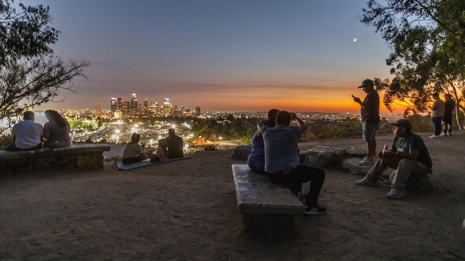 En Los Ángeles, el 6 de septiembre de 2024, la gente se ha quedado en Elisian Park por la noche debido a las altas temperaturas durante el día.