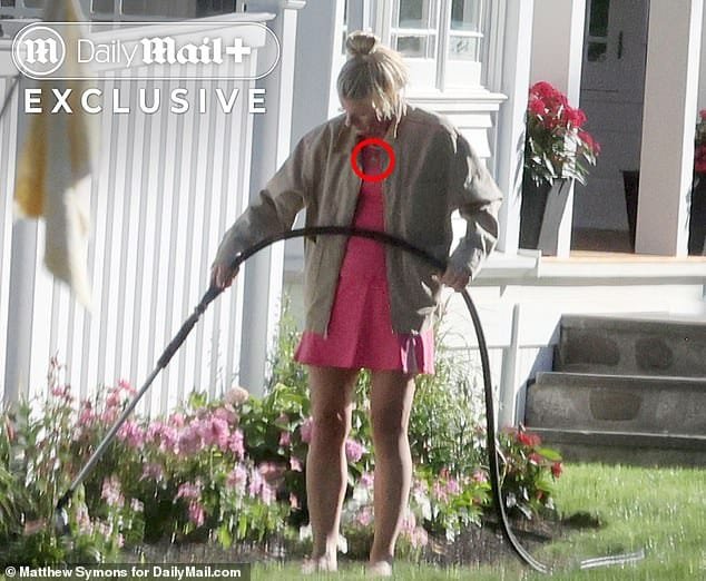 Christine Cabot fue visto vistiendo el mismo collar en capas durante la presencia de su infame concierto el miércoles cuando jardinería fuera de su casa de New Hampshire