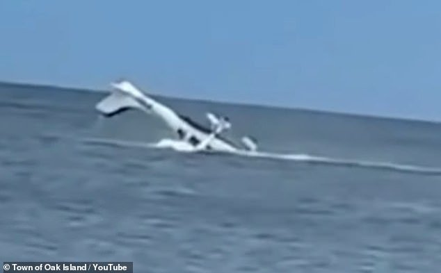 Se mostró a un piloto rescatado de un accidente aéreo cerca de Oak Island Pierre en Carolina del Norte después de que el agua de emergencia aterriza en imágenes dramáticas en imágenes dramáticas
