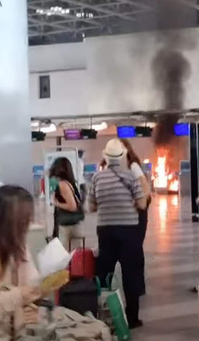 Las imágenes del aeropuerto mostraron que los pasajeros saltaron de la escena en la facturación de humo negro desde el interior de la terminal.