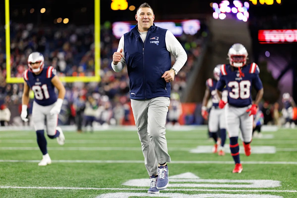 FOXBOROUGH, Mass. – El primer día, Mike Vrabel subió a su primer podio con los New England Patriots con un traje azul acero sobre los hombros y un estandarte de titanio en la cabeza.