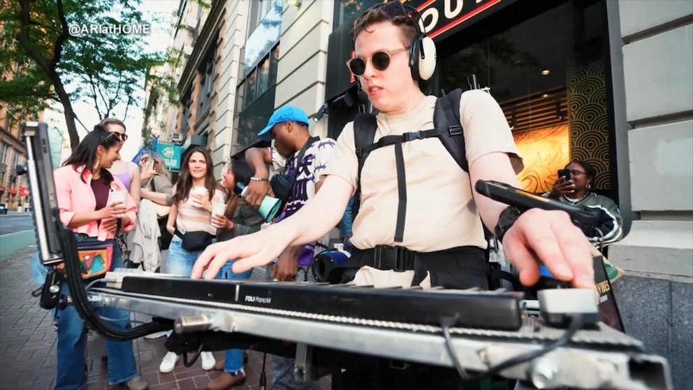 Danny New, de ABC News, habla con un joven neoyorquino que se está haciendo famoso tocando a todo volumen sus canciones en las calles e invitando a los transeúntes a seguirle el juego.
