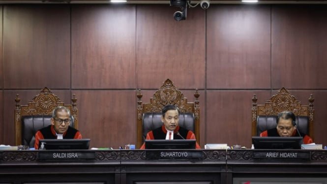 “Acepte las mociones del peticionario I, peticionario II y peticionario IV en su totalidad”, dijo el presidente del Tribunal Constitucional, Suhartoyo, leyendo el veredicto durante la audiencia de fallo en la Sala Plenaria del Tribunal Constitucional de Yakarta.