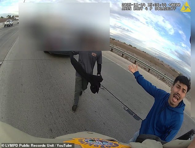 Las desgarradoras imágenes de la cámara corporal muestran la angustia de un padre de Nevada después de que su hijo muriera a tiros en un tiroteo provocado por la furia en la carretera mientras se dirigía a la escuela.
