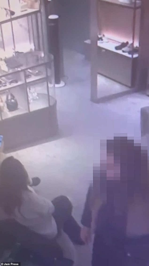 Las imágenes de CCTV muestran al ladrón, que parecía un comprador normal, mirando a su alrededor para ver quién la estaba mirando.