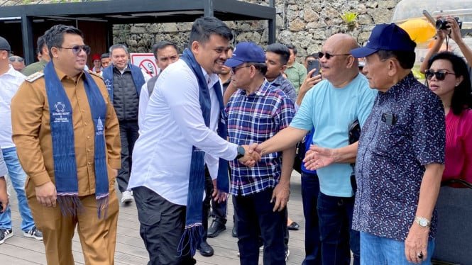 “Este es uno de los enfoques de transporte para el lago Toba, en particular la isla de Samosir. Aquí, hay una posada que conocemos de cinco pisos, que es un aterrizaje para aviones anfibios”, dijo.