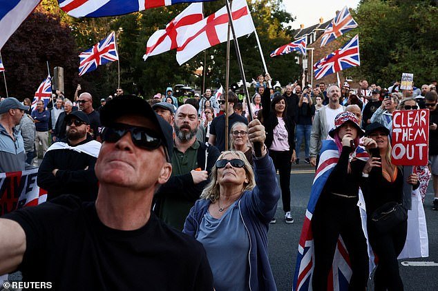 Manifestantes antimigrantes en Epping en agosto pasado. El Consejo del Distrito Forestal del Epping Tory D’Ssex ganó una orden judicial temporal el 19 de agosto de este año, ordenando a los solicitantes de asilo que abandonen el Bell Hotel