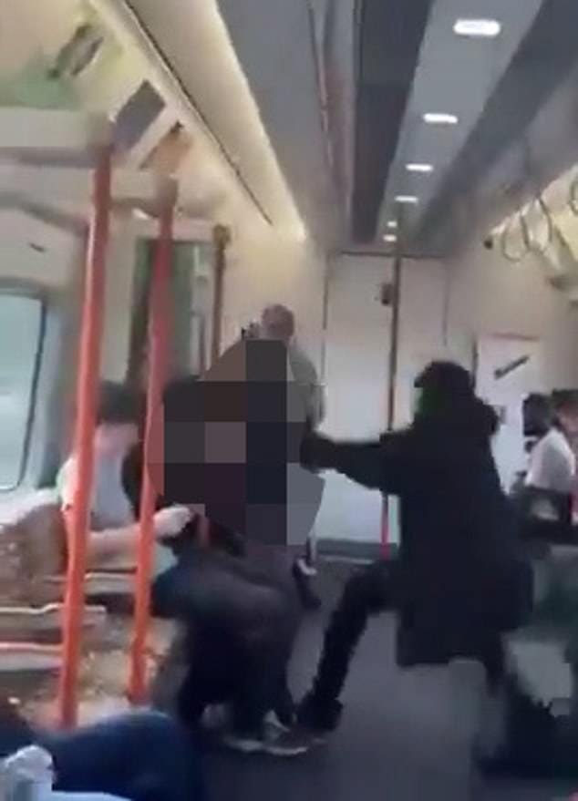 Los pasajeros intentaron romper la pelea y ayudar a una madre y a su bebé a salir de un buggy, antes de que la gente exterior saliera del piso antes de dejar al bebé.