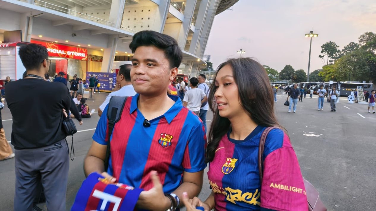 La ausencia de Kluivert, sin embargo, no apagó el entusiasmo del público. Uno de ellos era de dos aficionados del Barcelona, Raja y Angie, que estaban dispuestos a venir a GBK para ver a su jugador favorito, Martín Montoya.