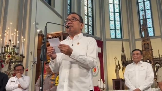 “Estamos aquí para transmitir los saludos del Presidente, y en nombre del gobierno les deseamos una Feliz Navidad y un Año Nuevo 2025. Que la paz del amor y la esperanza de la Navidad estén presentes en cada familia”, dijo Pratikno frente a la congregación en la Catedral, en el centro de Yakarta, el miércoles 24 de diciembre de 2025.